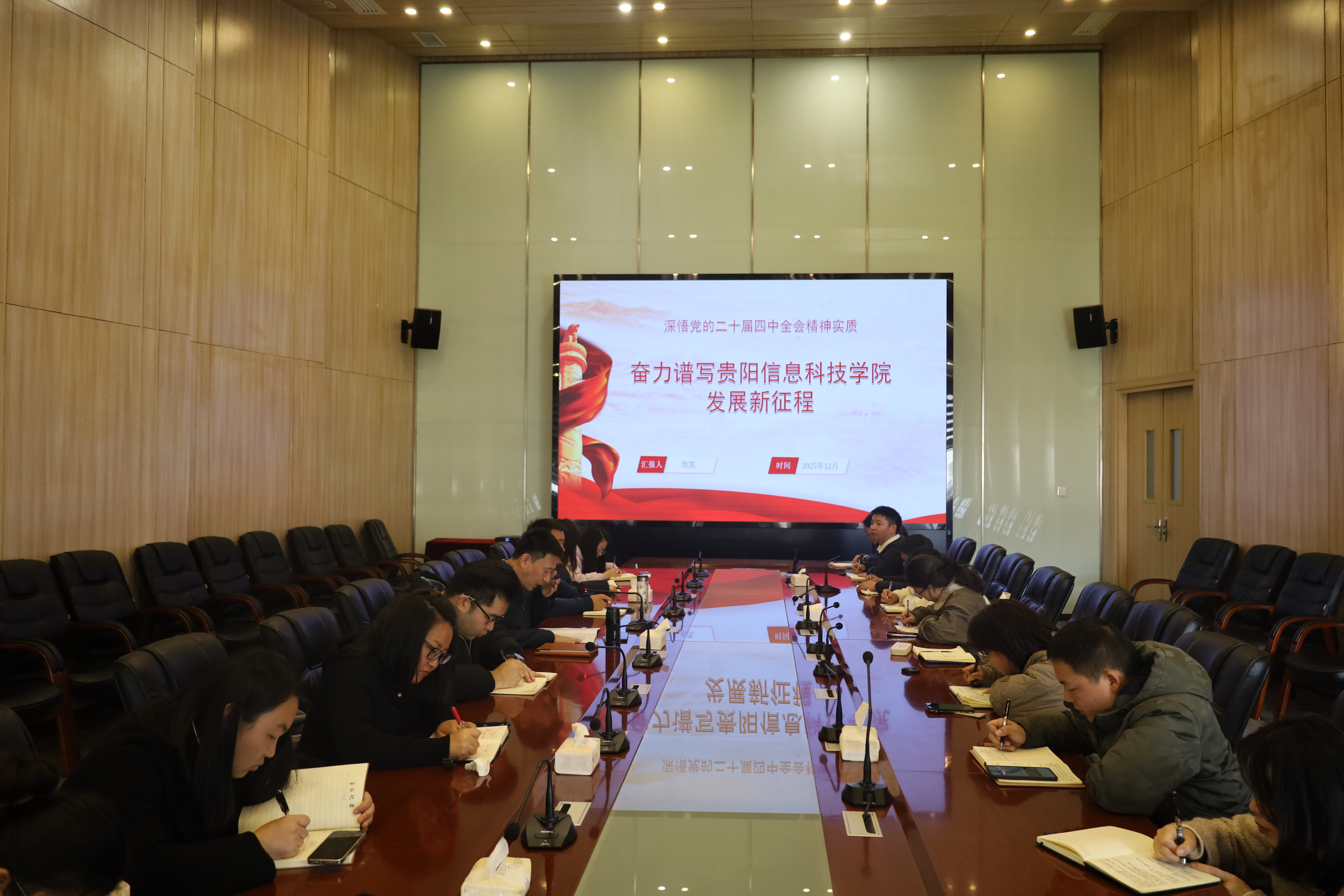 为深入学习领会党的二十届四中全会精神,切实将全会精神转化为推动学校各项事业高质量发展的强大动力,12月8日,伟德官网学生工作部、团委、大学生心理健康教育与咨询中心联合举办深入学习贯彻党的二十届四中全会精神专项学习会议。校党委副书记詹凯作主题宣讲,学生工作部、团委、大学生心理健康教育与咨询中心全体教师参会,会议由学生工作部部长张吉林主持。