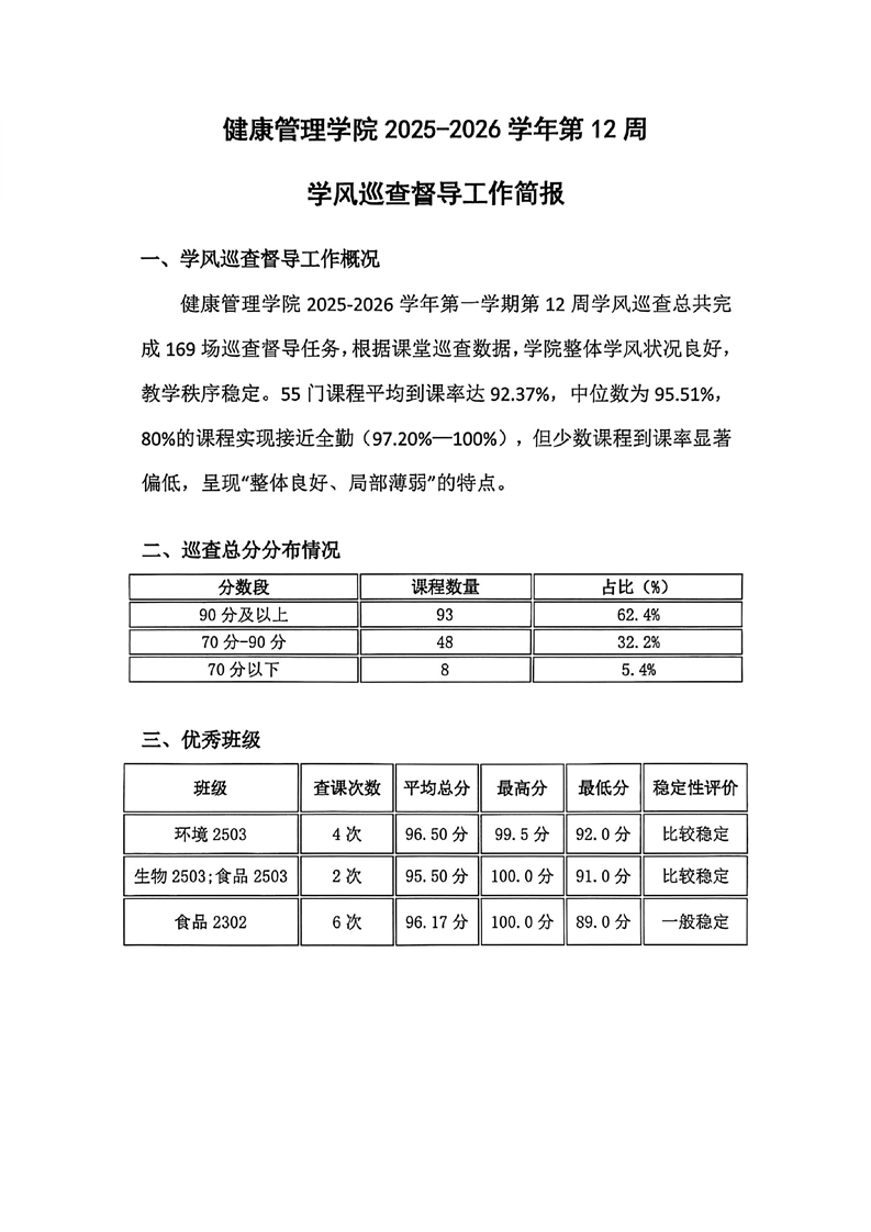 健康管理学院2025—2026学年上学期第十二周学风巡查督导工作简报
