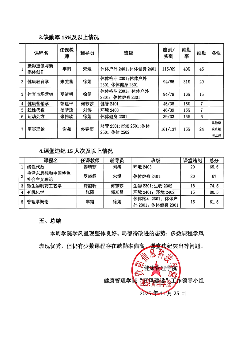 健康管理学院2025—2026学年上学期第十三周学风巡查督导工作简报