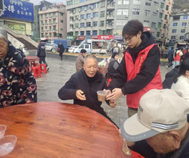 图为叶锦坤同志在福建省宁德市三沙镇开展送粥志愿服务