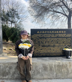 图为陶梦韩同志前往贵州省毕节市威宁县沙河烈士陵园开展实地瞻仰与学习
