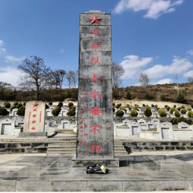 图为苏佳佳同志前往贵州省六盘水市六枝特区牛场乡黔中村安家窗子洞剿匪战斗遗址及龙桥烈士陵园进行研学
