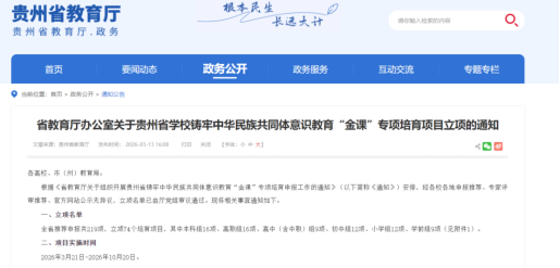一直以来,学校高度重视铸牢中华民族共同体意识教育,坚持将其融入教育教学全过程,着力打造有温度、有深度、有实效的 “金课” 课堂,引导广大师生厚植家国情怀。下一步,学校将以此次项目立项为契机,持续加强课程培育与教学研究,支持团队高质量完成项目建设任务,推出更多优质教育成果,为推动学校内涵发展、提升育人质量、服务全省铸牢中华民族共同体意识教育工作贡献更大力量。