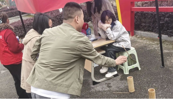 活动分别在1栋、3栋、5栋、11栋、12栋、14栋女生宿舍区设置多个趣味游戏点位,涵盖投壶、套圈、呼啦圈、趣味保龄球、跳绳等多项互动体验项目,将传统游戏与趣味运动相结合,营造出轻松欢乐的节日氛围。