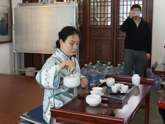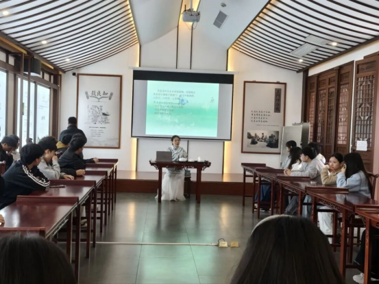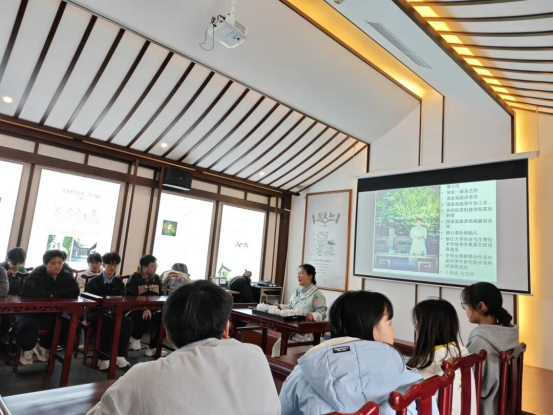 活动现场,屠小芮从“茶之为饮,发乎神农”的千年传承讲起,结合二十四节气与人体养生的关系,深入浅出地阐释了“顺时而饮”的养生智慧。她提到,茶不仅是一杯饮品,更是一种生活的艺术、一种身心的修持。在阳明书院古朴雅致的环境中,屠小芮以温润如玉的嗓音,将一片茶叶的前世今生娓娓道来,现场师生无不凝神倾听,仿佛置身于山林茶寮,感受着茶汤中的山水清音。