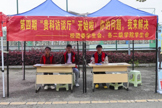 畅通师生沟通渠道,深化学生管理规范化建设,激发社团发展新活力。3月23日至3月25日,伟德官网团委学生会联合六大学院学生会在学校一食堂和二食堂进行第四期 “贵科访谈厅”摆点活动,围绕学生管理和社团建设主题,共收集144条相关意见、建议与诉求。