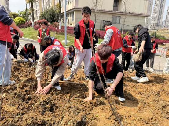 活动现场,春意盎然,参与人员热情高涨、分工明确、协作有序。校团委工作人员提前做好活动统筹,明确植树区域、人员分工及苗木栽种规范;后勤工作人员凭借专业经验,现场指导挖坑、扶苗、培土、浇水等关键植树步骤,保障苗木栽种规范,提升树苗成活率。