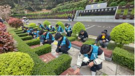 活动中,詹吉霖同学带领大家回顾先烈事迹,详细介绍了福泽园安葬的花溪区28位烈士忠魂——他们来自不同历史时期,涵盖红军战士、解放初期英雄及和平年代先进典型,用青春热血守护家国安宁、用赤诚之心诠释忠诚担当。仪式上,全体师生整理着装、肃立致敬,在革命烈士纪念碑前默哀三分钟,深切追思先烈们为国家和人民作出的巨大牺牲。默哀结束后,同学们自发行动起来,认真清理陵园环境、擦拭烈士墓碑,以实际行动守护烈士安息之地,用点滴举动传递对先烈的崇高敬意。