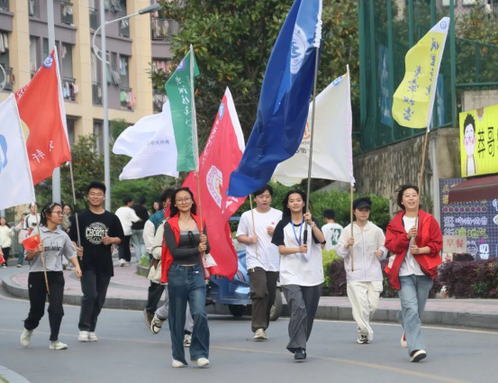 活动当天,参与师生在学校图书馆前有序集结、完成热身,全员精神抖擞、纪律严明。詹凯宣布活动开始后,全体人员沿校园主干道开启全程6公里的环校健步走行程。行进途中,校领导率先垂范,主动引领健康运动风尚;学生队伍结伴而行、彼此鼓劲,师生们在徒步中舒展身心、缓解压力,充分展现高校师生昂扬向上的精神风貌。