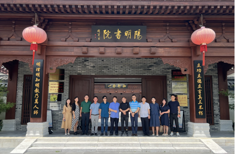 最后,唐建荣校长与胡文华书记一行于阳明书院正门合影留念。