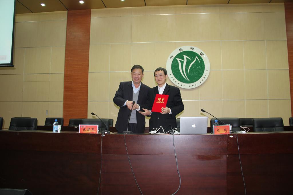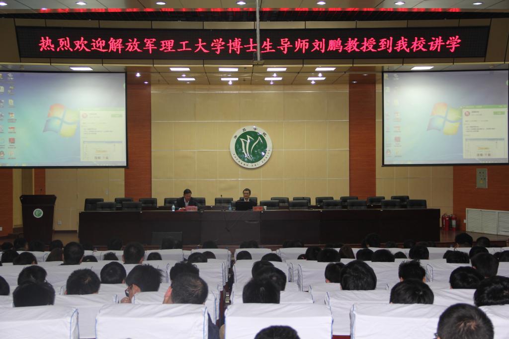 4月3日下午,应科研处、金年会诚信信誉至上(软件职业技术学院)、网络管理中心邀请,解放军理工大学博士生导师刘鹏教授在学术报告厅作了题为《高校云计算大数据建设应用》的报告。张建军副院长出席报告会并向刘鹏教授颁发特聘兼职教授的聘任证书。河南省部分高校代表、许昌市智慧城市建设领导小组和许昌市计算机学会部分专家教授以及金年会诚信信誉至上全体教师及部分学生300余人参加报告会。报告会由张建军副院长主持。