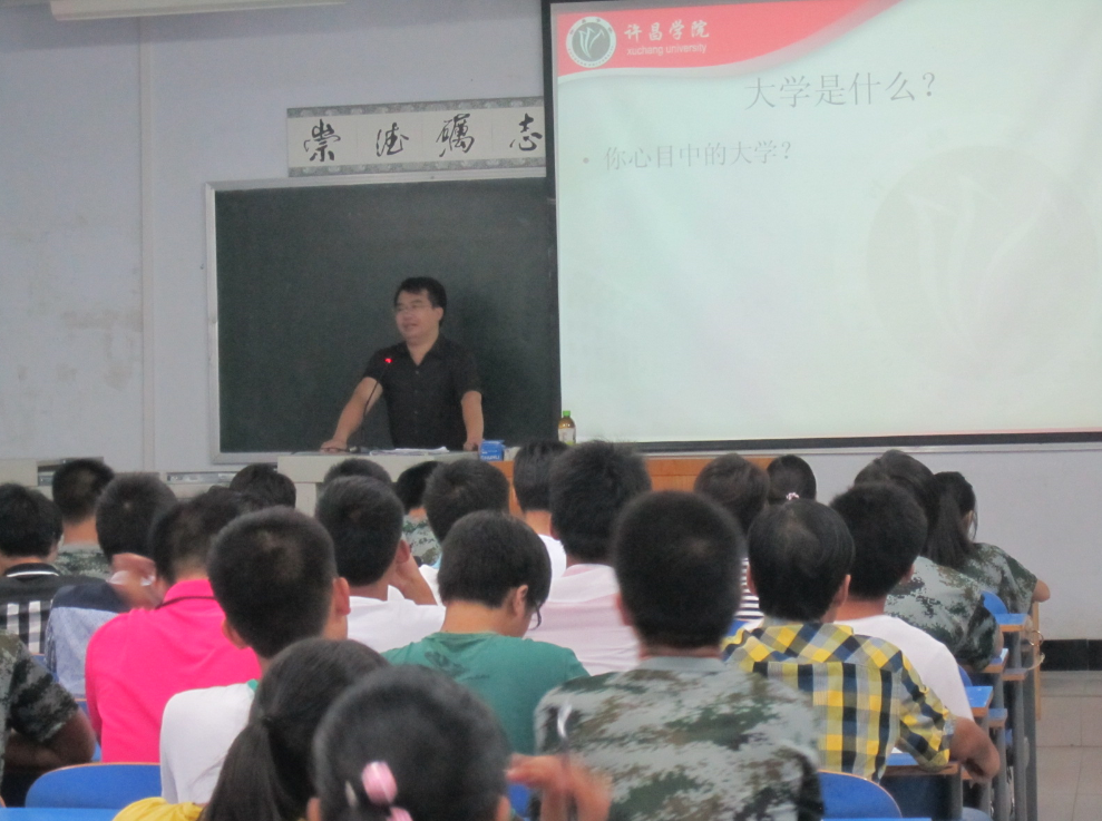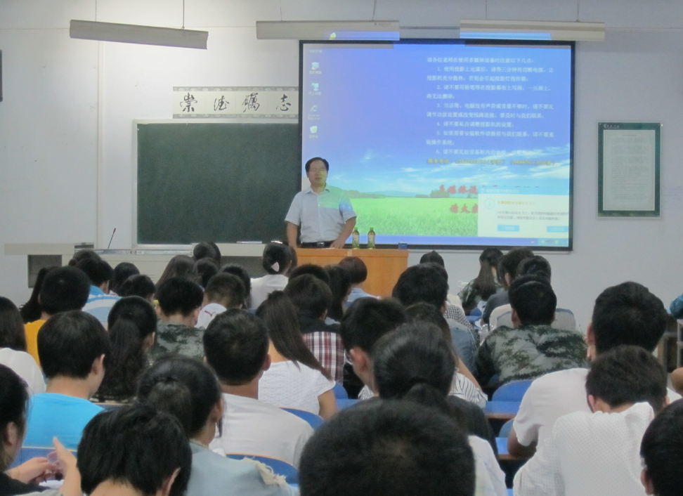 9月11日晚7点,院党总支书记郭超峰、副院长冯战申与2013级新生在C404、405教室见面并做入学教育,教学秘书鄢靖丰、2013级新生辅导员田俊巧、马琳展陪同参加。
