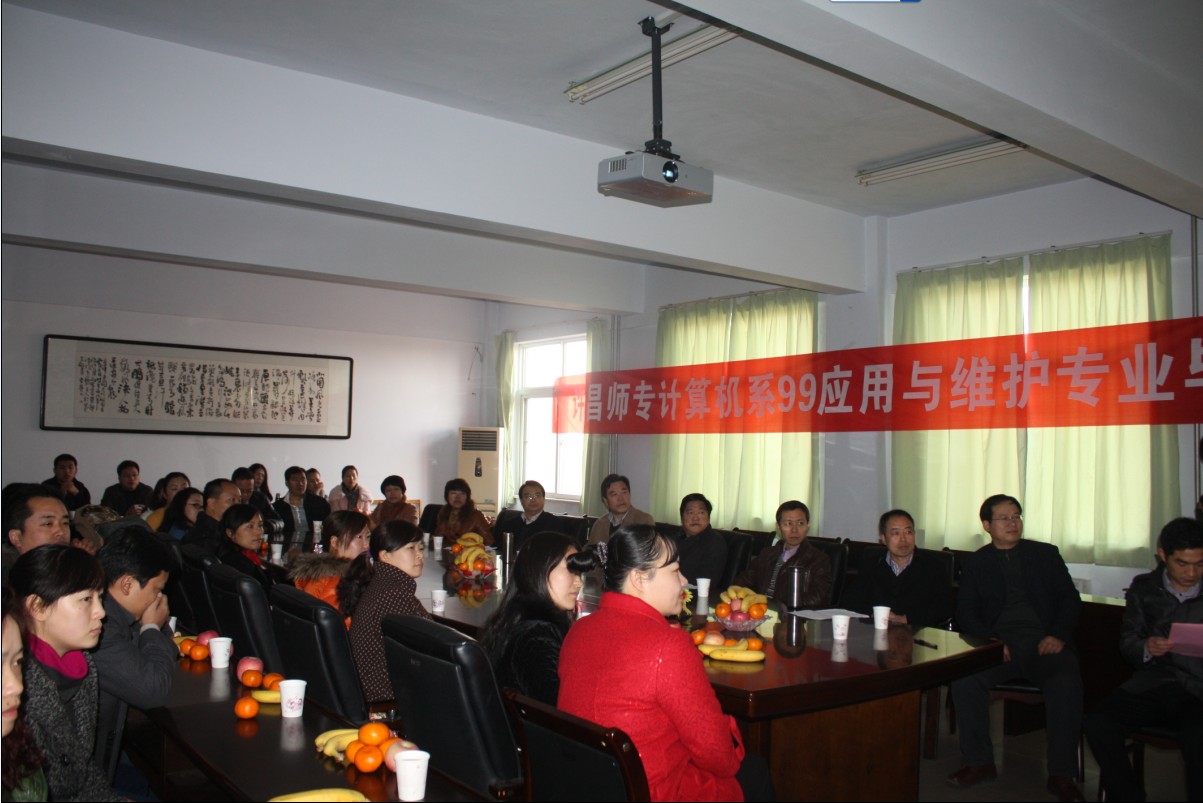 在我校喜迎七十周年校庆、升本10周年之际,许昌师专计算机系99级同学迎来了他们期盼已久的毕业10周年相聚。11月24日上午9:00,计算机系99级应用与维护专业学生毕业10周年聚会在计科楼三楼会议室隆重举行。原计算机系党总支书记、现金年会jinnianhuicom审计处处长纪玉卿,原计算机系团总支书记、现计算机科学与技术学院党总支书记郭超峰,原计算机系副主任、现计算机科学与技术学院副院长胡子义,99级1班班主任邱颍豫,99级2班班主任、现国际教育学院党总支书记杜根远,现计算机科学与技术学院院长张志立,副院长冯战申,李梅莲老师等参加了校友们的联谊活动。活动由99级班长、现计算机科学与技术学院党总支副书记翟广辉主持。
