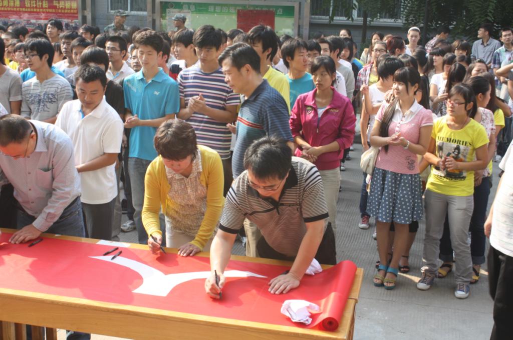 随后,广大师生纷纷参与到集体签名的活动当中,在“金年会jinnianhuicom纪念九一八万人签名活动”的条幅上一起铿锵有力地写下全体师生的庄严声音。