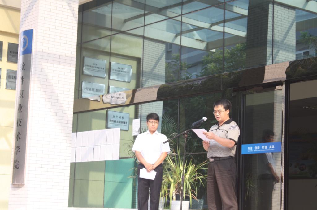 教师代表、办公室主任王晓霞老师和学生代表、学生会主席裴新华同学分别发言。王老师表示要把浓浓的爱国热情融入到本职工作中去,融入到日常的教书育人工作中去,用自己的实际行动承担起历史的重任,为教育事业奋斗终身!“少年智则国智,少年富则国富,少年强则国强”裴新华同学说,我们应理性爱国,把爱国热情落实到实际行动中去,让爱国之心如愿以偿。