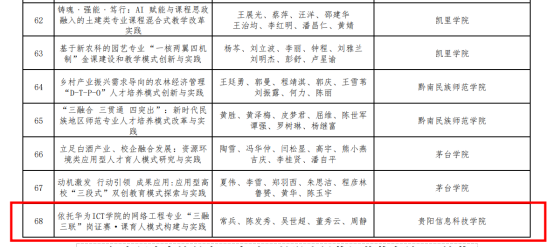 根据《贵州省教育厅关于组织开展2024年省级高等教育教学成果奖评选工作的通知》文件精神,经相关单位申报、省教育厅组织专家评审,并报厅党组会审定,我院教学成果《依托华为ICT学院的网络工程专业“三融 三联”岗证赛·课育人模式构建与实践荣获二等奖
