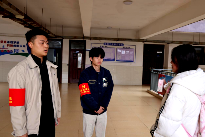 “起初赶课被学风督查队提醒时还有些局促,如今提前吃完早餐、带着清爽状态进教室已成常态,心能更快沉下来投入学习。”2025级通信工程专业周玥彤同学的分享,道出了学子们的共同转变。这背后,是学院党总支“服务师生有‘热’度”的具象实践:辅导员每日查课、每周两次深入宿舍的常态化对接,党员团员先锋队在教学楼宇前的文明督导,将管理服务的触角延伸至育人“最后一米”。“‘星光同行’理念下的,老师们更加关注同学们不同特点和个性差异,注重因材施教;学长辅导计划和班级学习小组,让我不再是孤军奋战,学习路径更清晰,主动探索的劲头也更足了。”周玥彤的话语里,满是成长的底气。