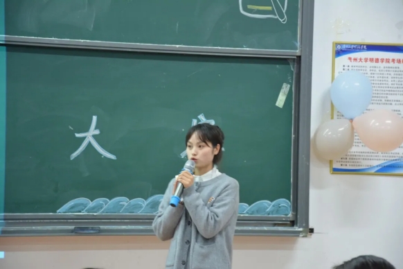 第一轮同学的分数落定,比赛依次进行,第二组比赛结束后由现场工作人员为评委老师和现场观众评委的打分进行统计。同时开展有奖知识竟答活动,现场同学灵活多变、机智满分、热闹非凡。