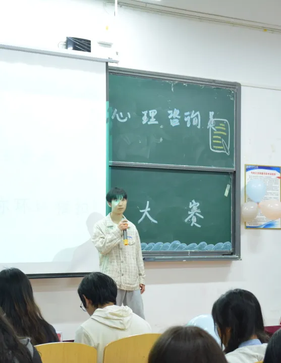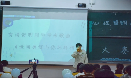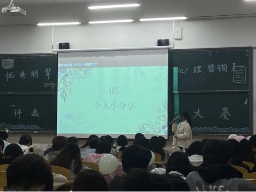 比赛开始参赛者们激情澎湃,准备充分,信心满满地介绍了自己班级心理活动组织情况和班级心理晴雨表收集情况以及个人获奖经历。比赛中场休息时由社团进行表演,燃起现场气氛。