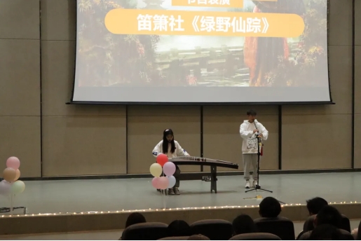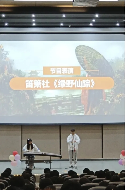 ● 古人云:笛奏龙吟水,萧鸣凤下空。萧鼓鸣兮发棹歌,欢乐极兮哀情多。中场,笛箫协会的同学为我们带来了古筝洞箫合奏《绿野仙踪》的表演。