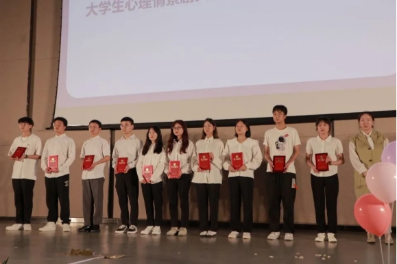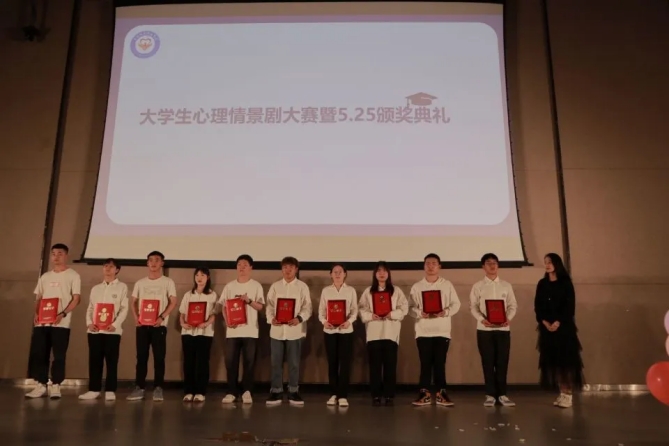 接下来,来到了隆重的颁奖环节。由心理教研室董婕为优秀朋辈心理咨询员颁发荣誉证书和由人力资源处处长文韵娇为心理健康短视频大赛的获奖作品人员颁发证书,同时公布心理情景剧大赛获奖名单并由校党委书记郭林桦颁发奖品以及证书。