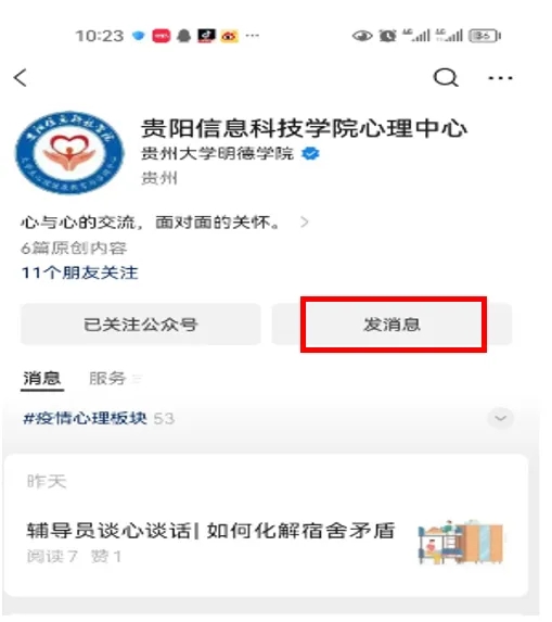 1.微信搜索“BV伟德中国官方网站心理中心”,点击“关注公众号”。