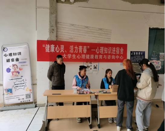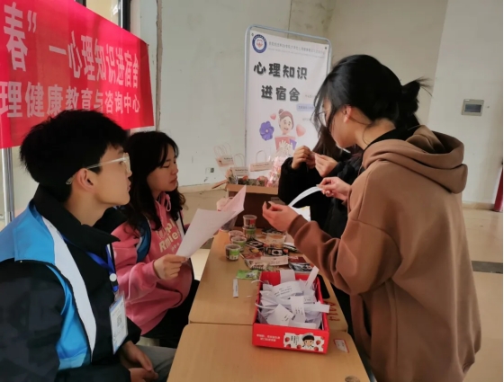 为更好地普及心理健康知识,加深大学生对心理健康的了解,让大家在忙碌的学习中,也能保持阳光积极的心态。伟德官网大学生心理健康教育与咨询中心于2024年3月18日-3月22日面向全校学生在各学生宿舍楼栋开展了以“健康心灵、活力青春”为主题的心理知识进寝室活动,本次活动主要以“现场摆点答题”和“宿舍随机访问”两种形成开展。