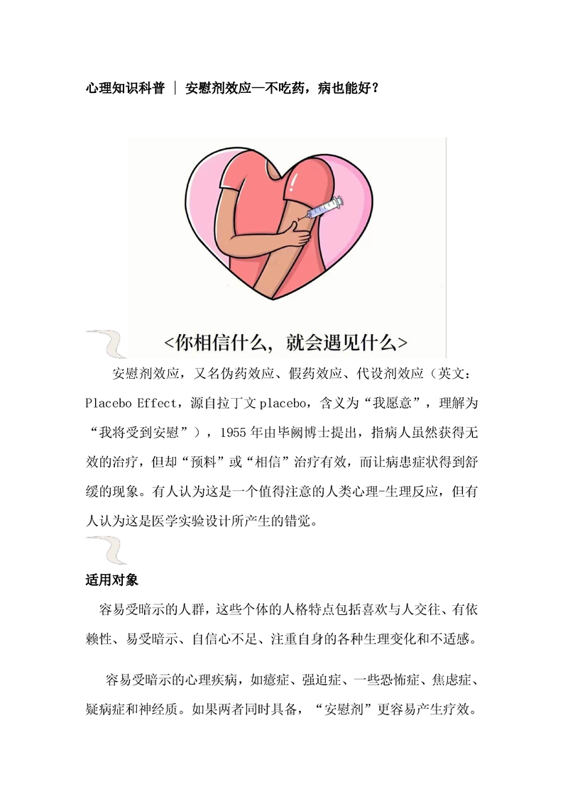 心理知识科普—安慰剂效应 不吃药,病也能好?