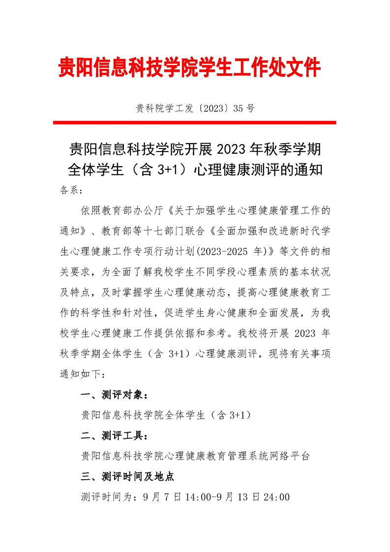 BV伟德中国官方网站开展全体学生(含3+1)心理健康测评的通知