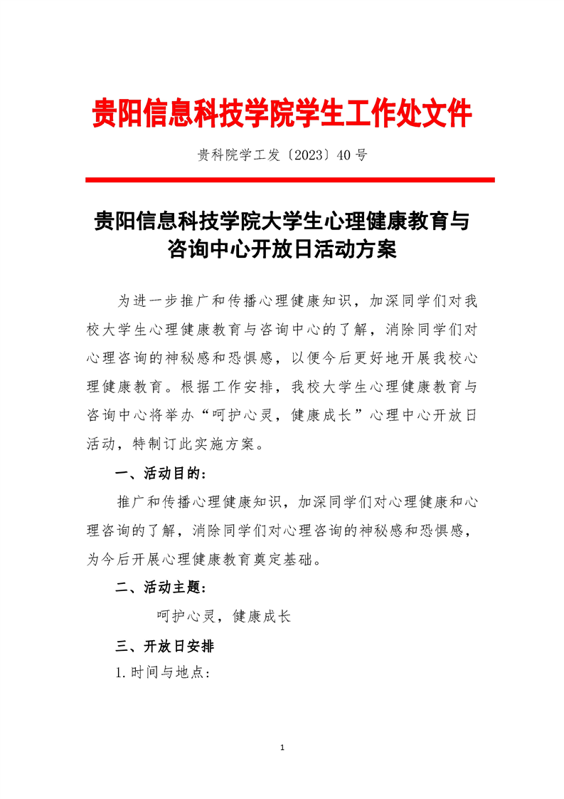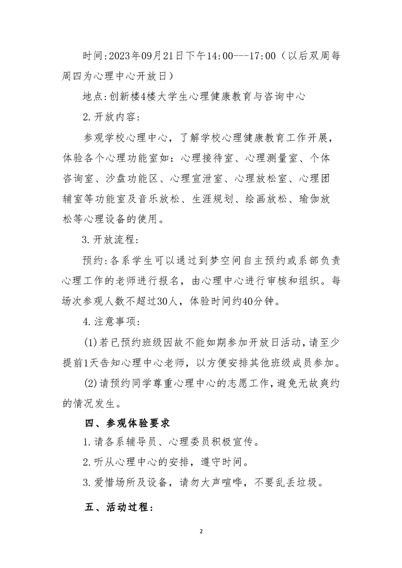 BV伟德中国官方网站大学生心理健康教育与咨询中心开放日活动方案