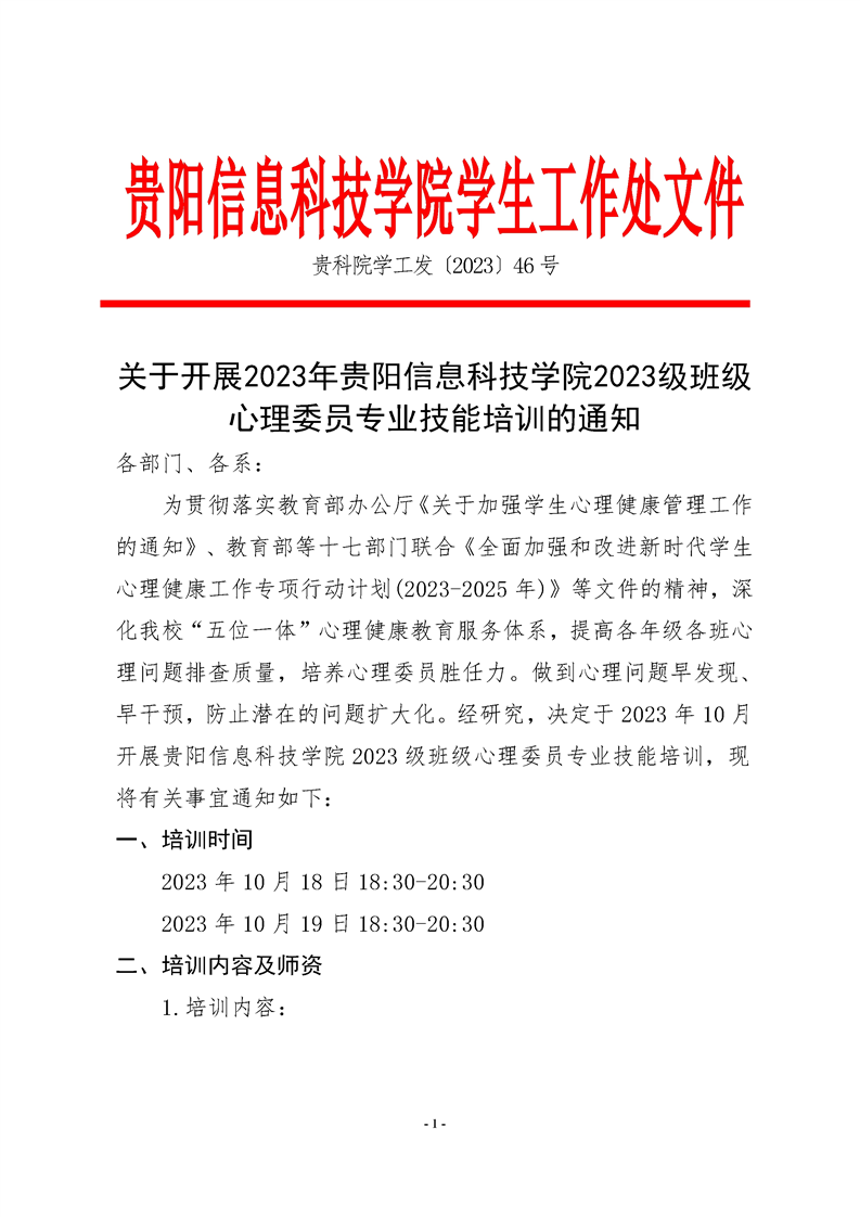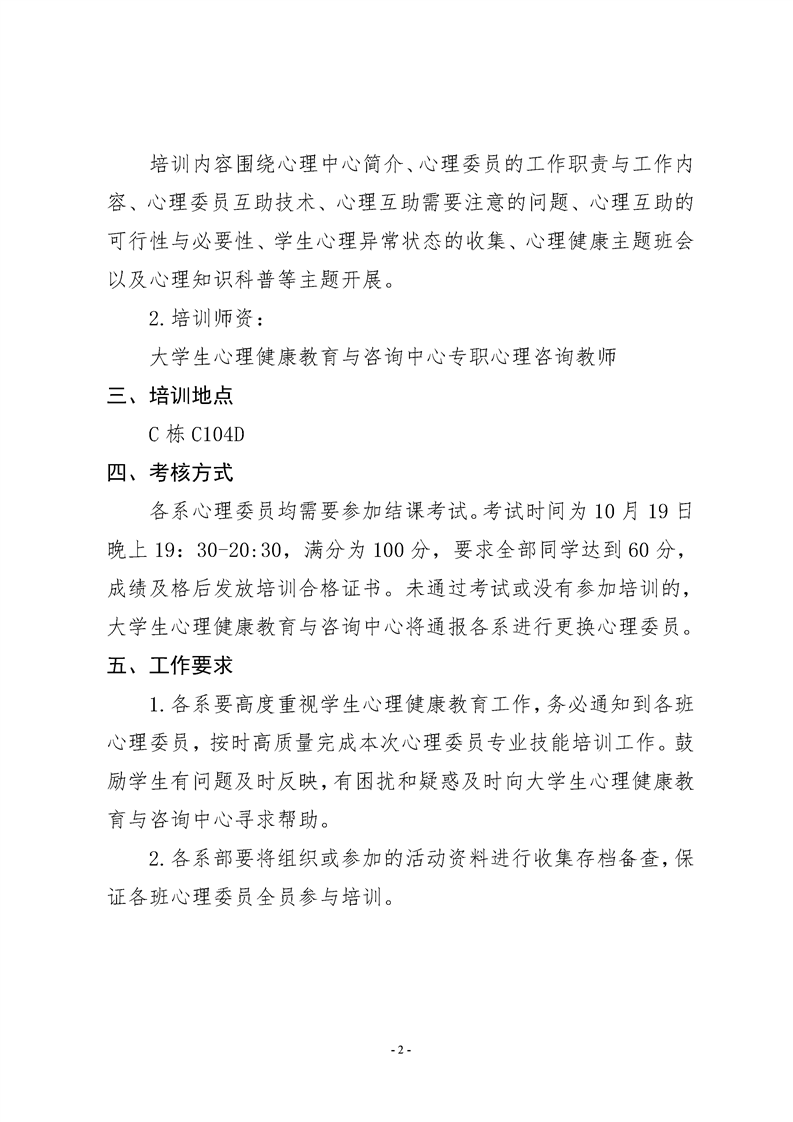 关于2023年班级心理委员技能培训的通知
