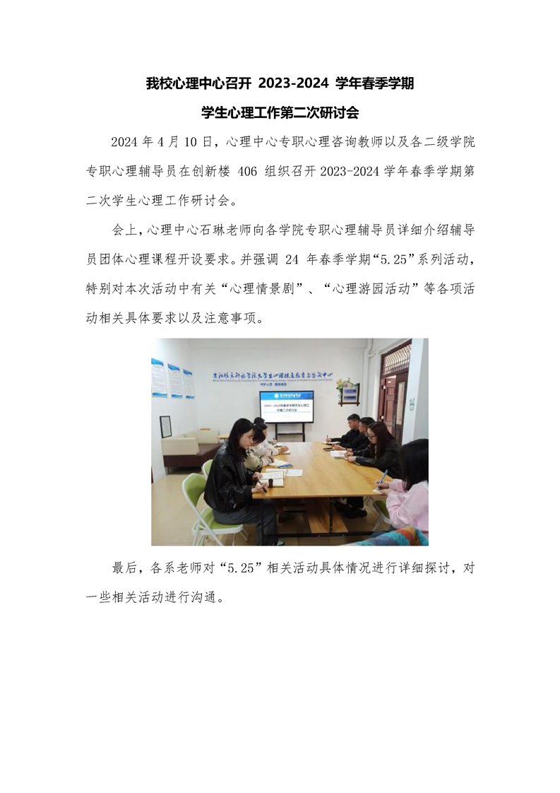 大学生心理健康教育与咨询中心组织心理辅导员召开2023-2024学年第二学期第2次学生心理工作安全会议