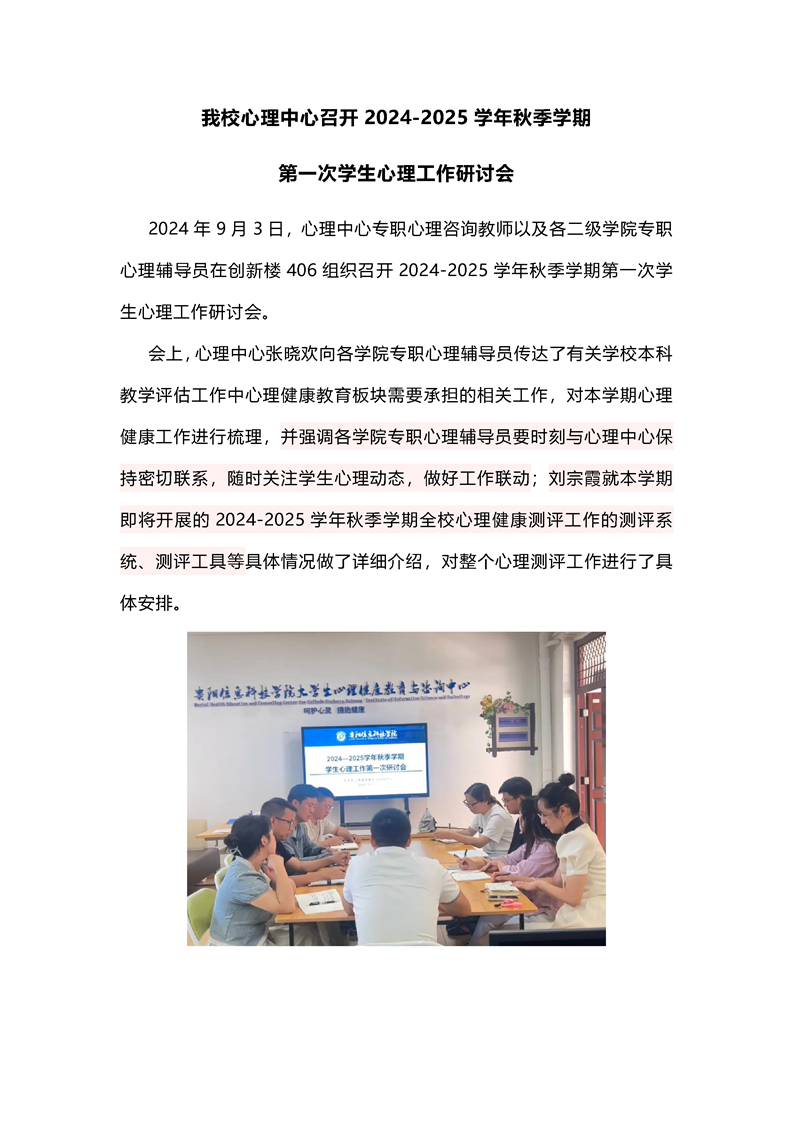 伟德官网心理中心组织专职心理辅导员召开2024-2025学年秋季学期第一次学生心理工作研讨会