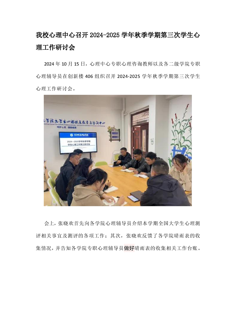 心理中心召开2024-2025学年秋季学期第四次学生心理工作研讨会