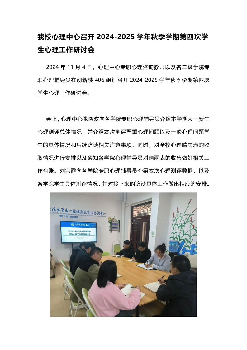 心理中心召开2024-2025学年秋季学期第四次学生心理工作研讨会