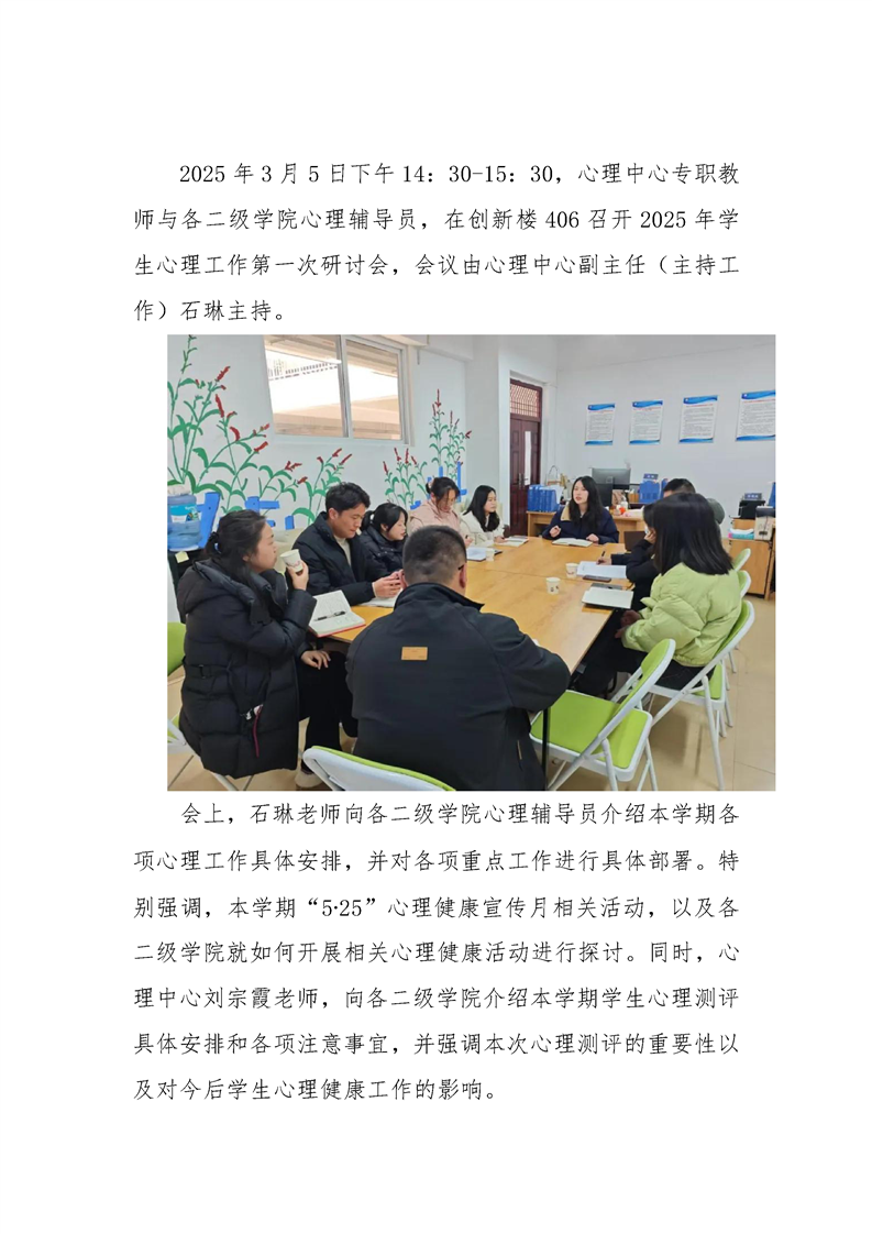 大学生心理健康教育与咨询中心召开2025年第一次学生心理工作研讨会