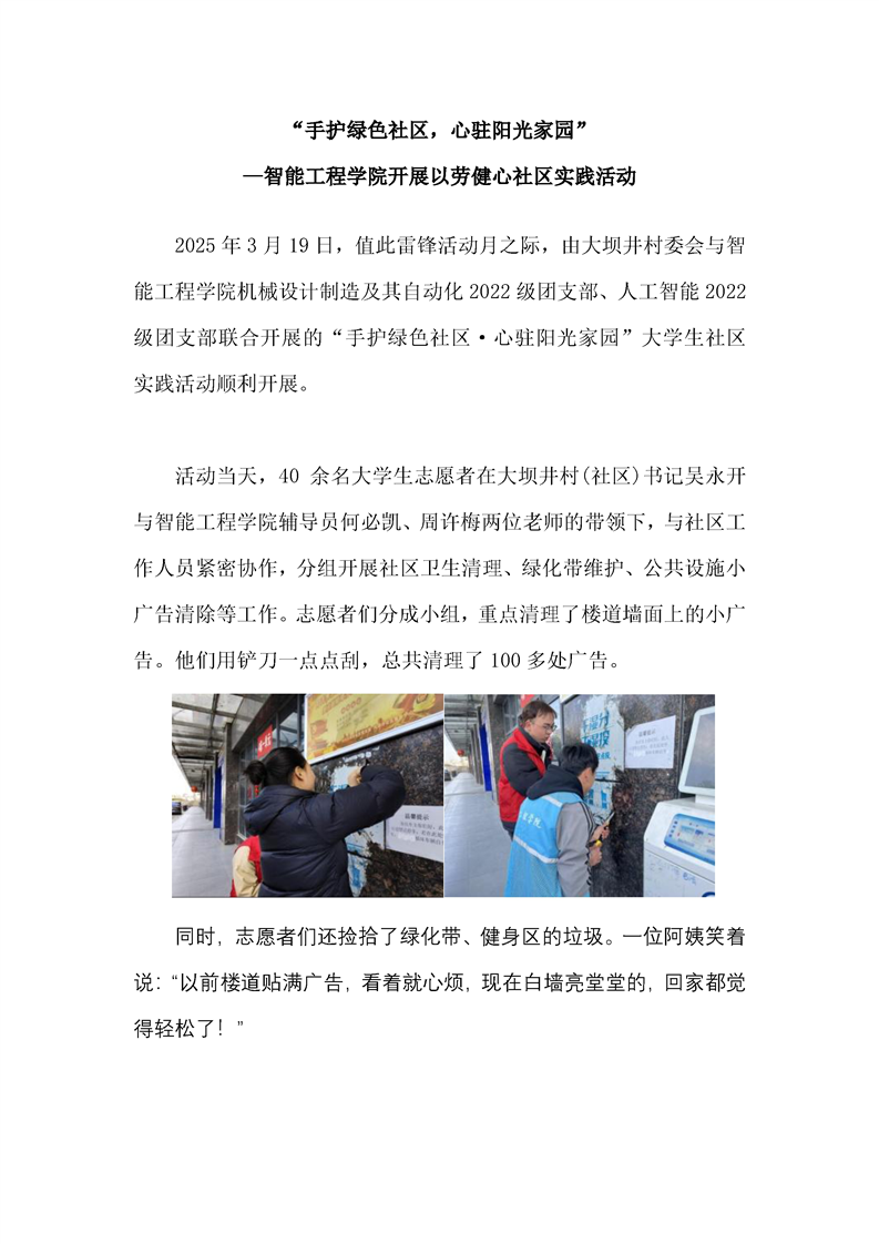 “手护绿色社区,心驻阳光家园” ——智能工程学院开展以劳建心社区实践活动