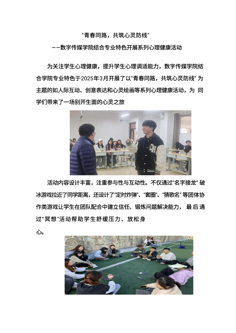 “青春同路,共筑心灵防线” ——数字传媒学院结合专业特色开展系列心理健康活动