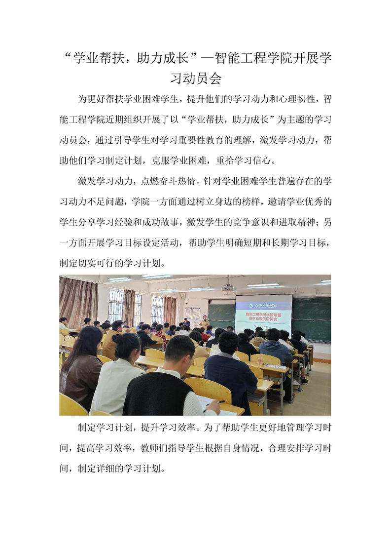 “学业帮扶,助力成长”—智能工程学院开展学习动员会