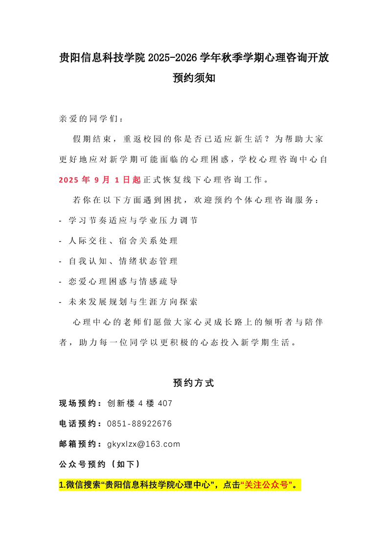 BV伟德中国官方网站2025-2026学年秋季学期心理咨询开放预约须知
