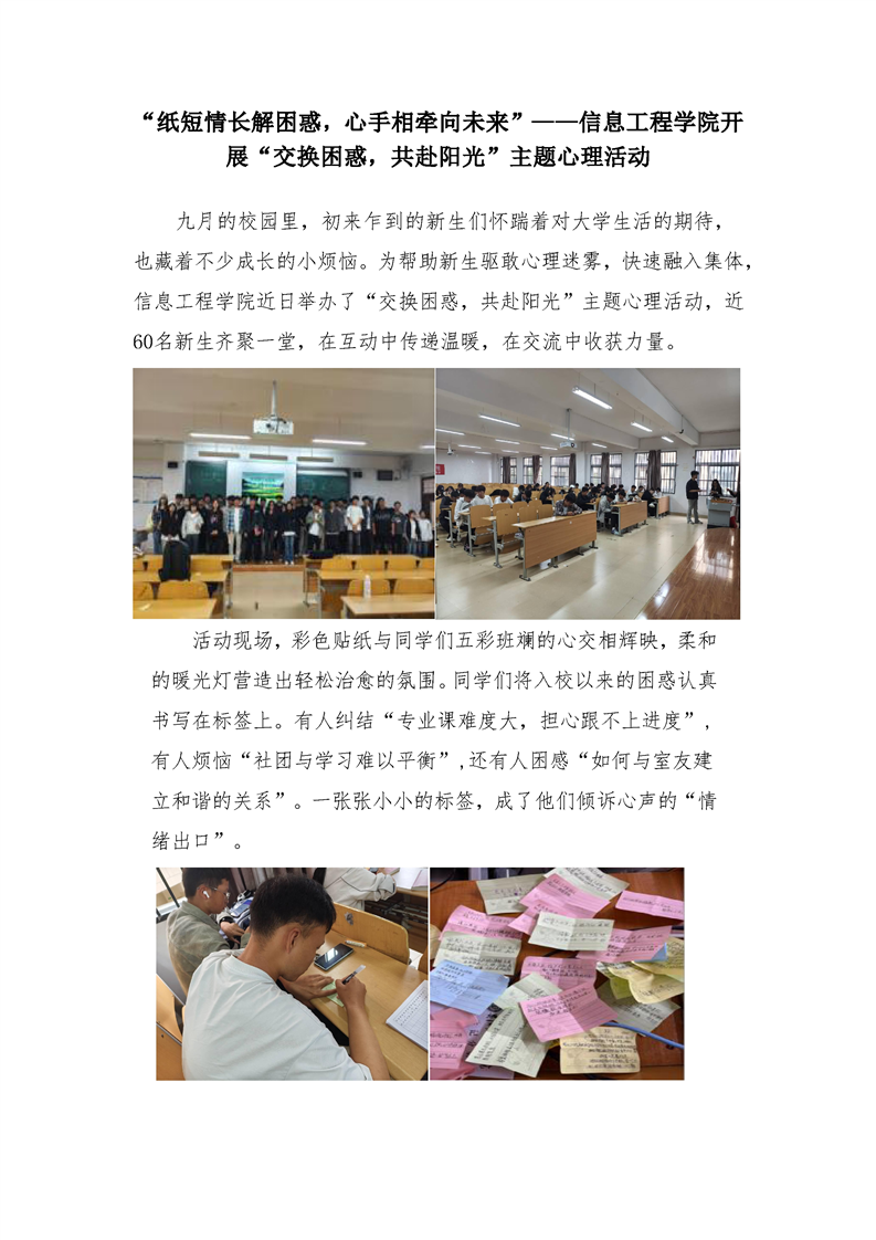 “纸短情长解困惑,心手相牵向未来”——信息工程学院开展“交换困惑,共赴阳光”主题心理活动