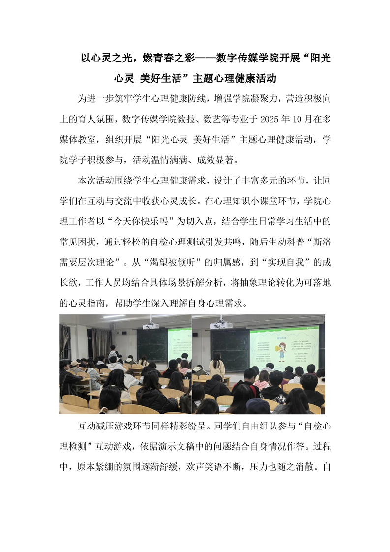 以心灵之光,燃青春之彩——数字传媒学院开展“阳光心灵 美好生活”主题心理健康活动