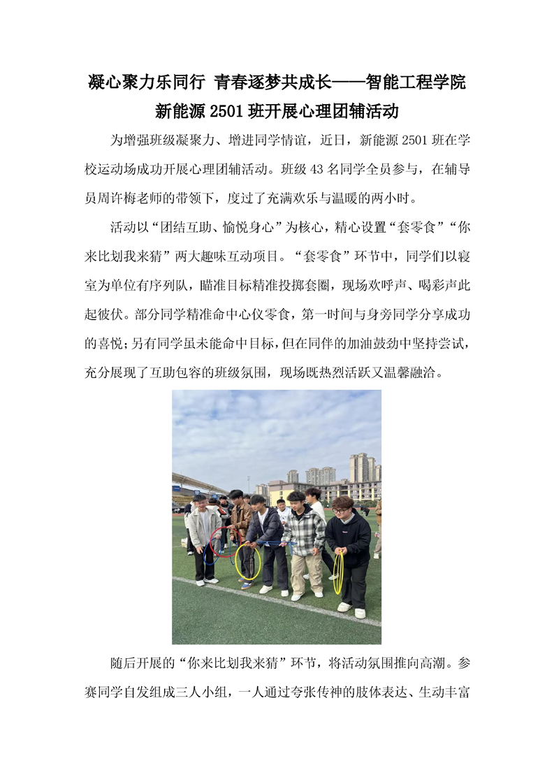 凝心聚力乐同行 青春逐梦共成长——智能工程学院新能源2501班开展心理团辅活动