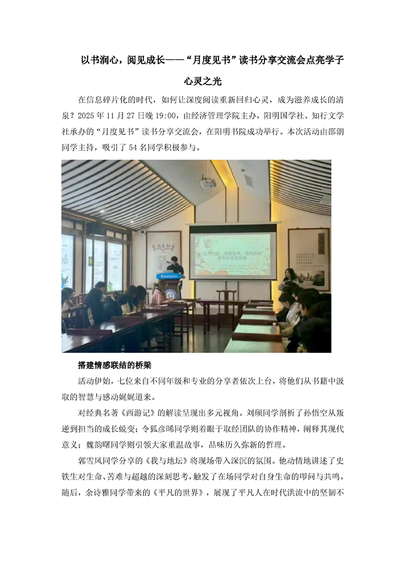 以书润心,阅见成长——“月度见书”读书分享交流会点亮学子心灵之光