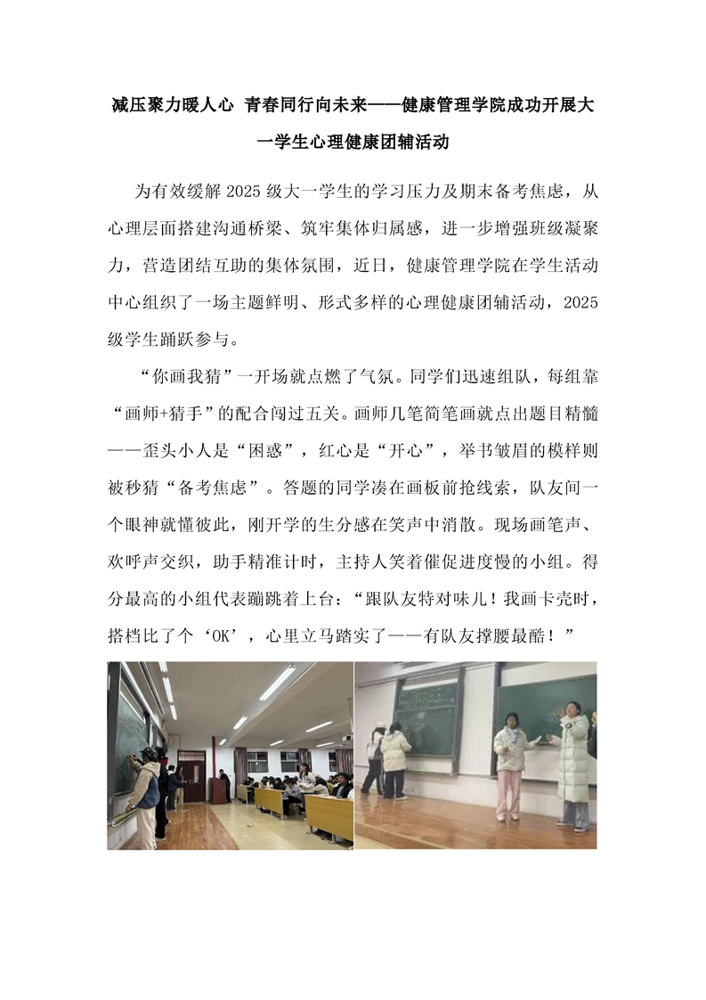 减压聚力暖人心 青春同行向未来——健康管理学院成功开展大一学生心理健康团辅活动
