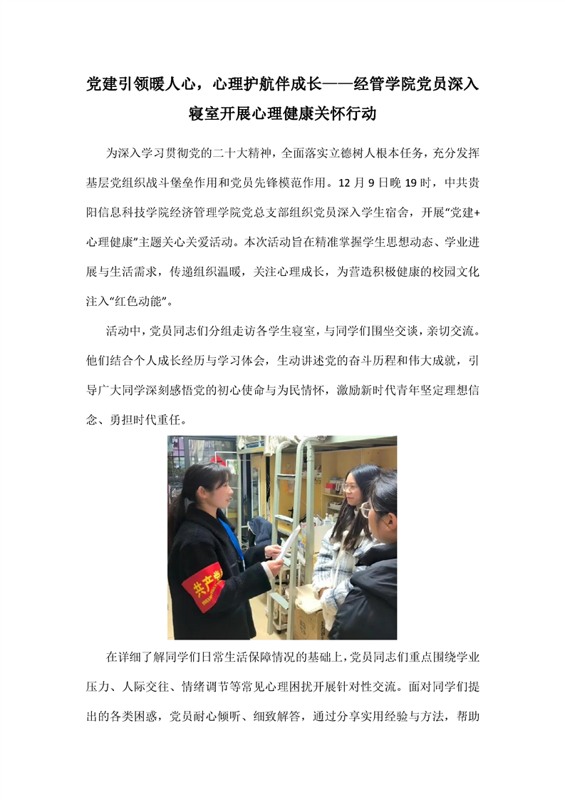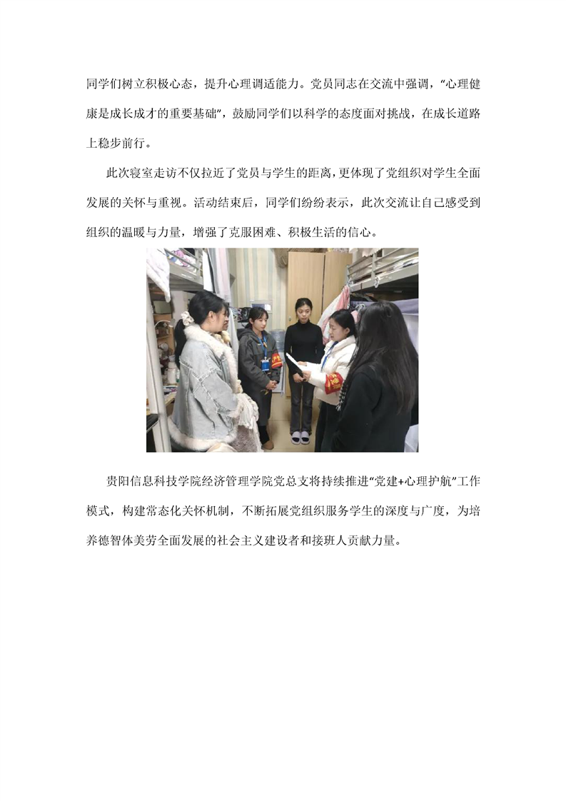 党建引领暖人心,心理护航伴成长——经管学院党员深入寝室开展心理健康关怀行动