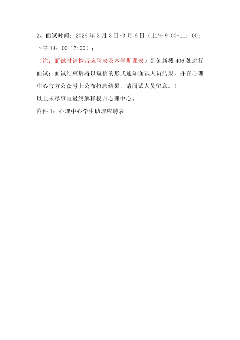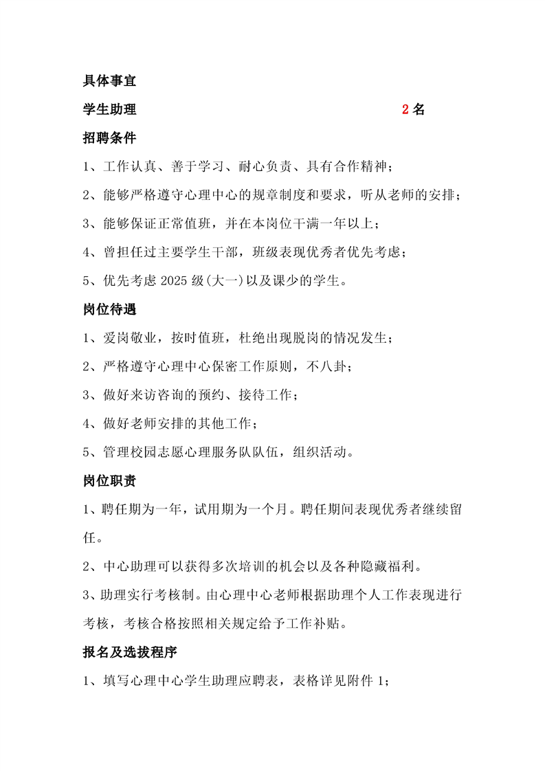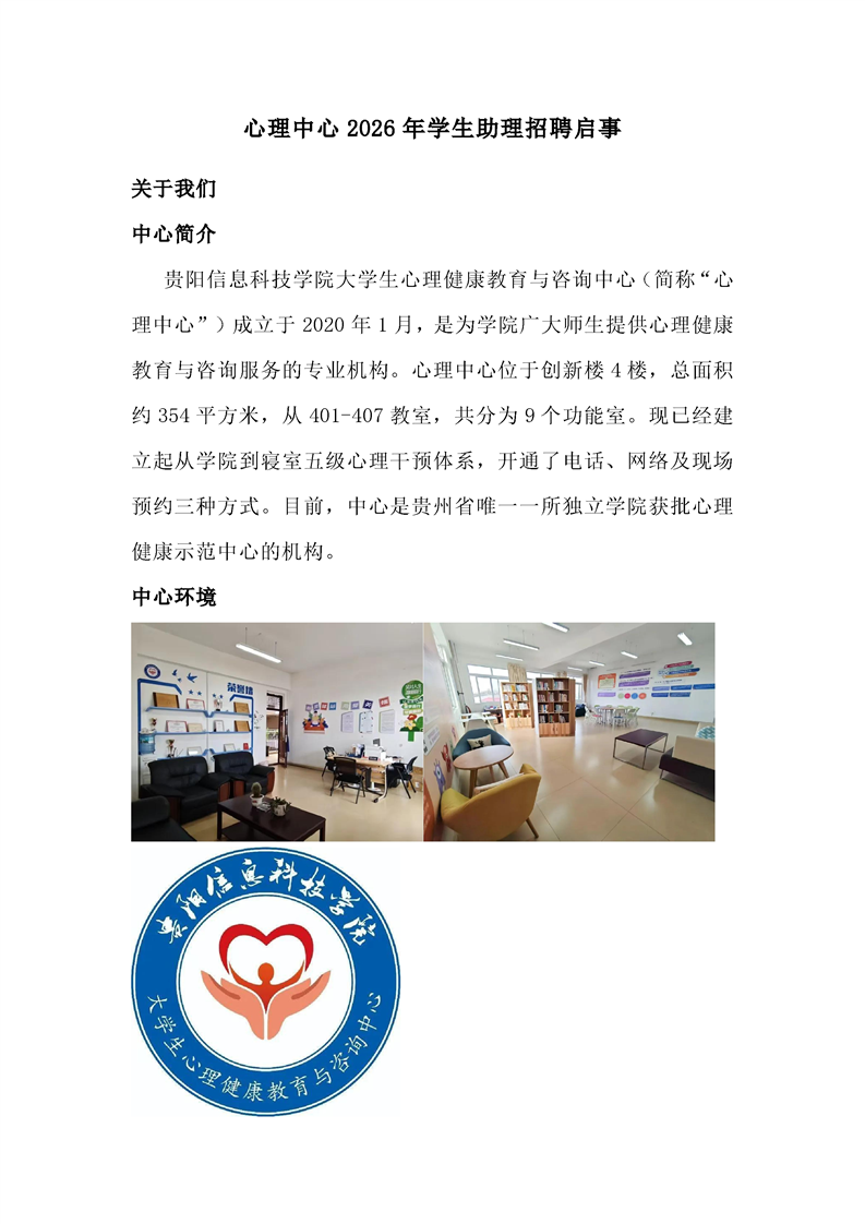 心理中心2026年学生助理招聘启事