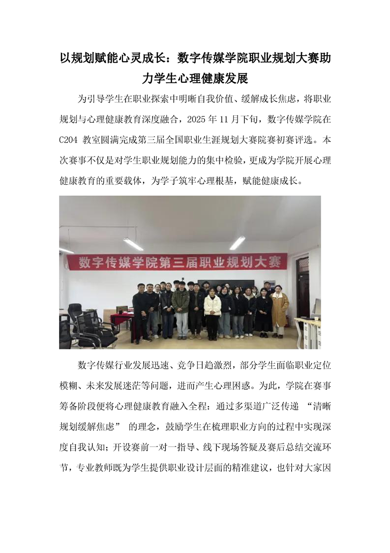 以规划赋能心灵成长:数字传媒学院职业规划大赛助力学生心理健康发展