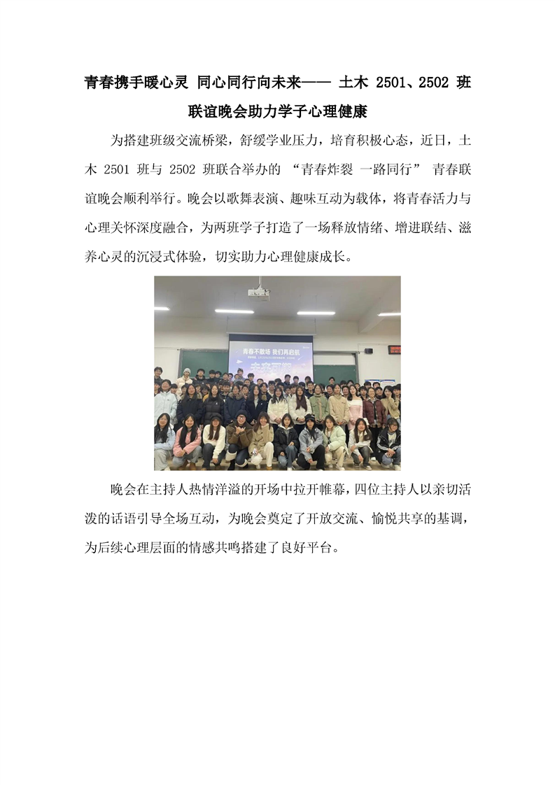 青春携手暖心灵 同心同行向未来—— 土木 2501、2502 班联谊晚会助力学子心理健康