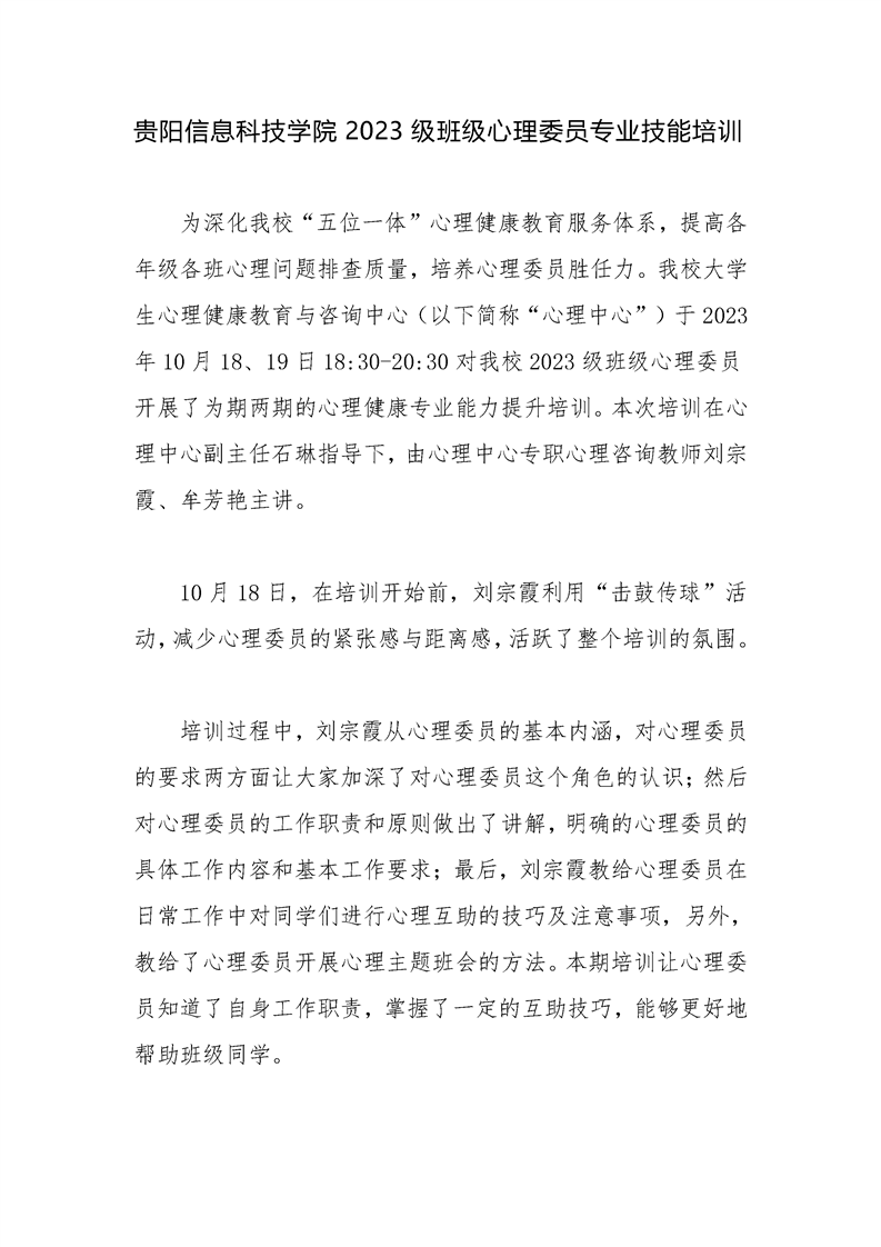 BV伟德中国官方网站2023级班级心理委员专业技能培训
